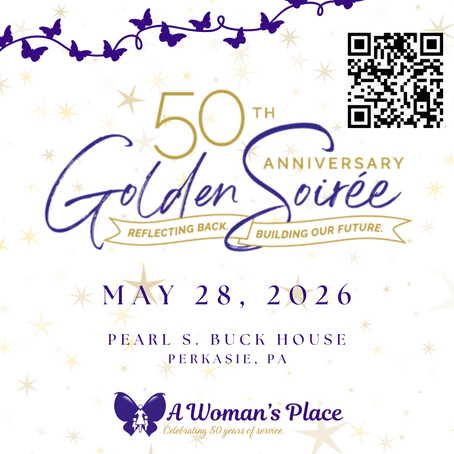 We hope you'll join us on May 28th at our 50th Anniversary Golden Soirée, 6-9:30, for an evening of cocktails, small bites, and silent and live auctions. We'll come together to support domestic violence survivors with a night of community, generosity, and impact.